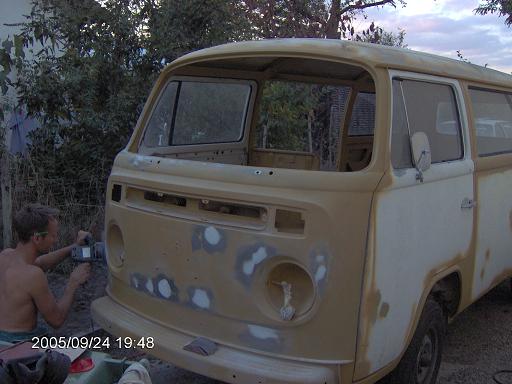 Qui dit sablage dit aussitôt pose d'apprêt , voici ce que cela donne avec les moyens du bord :